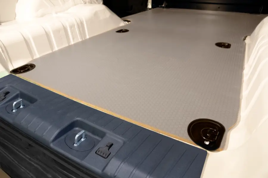El suelo es la base del espacio de carga y con nuestro suelo protector específico para cada modelo obtendrá una sólida protección contra el desgaste. Además, es una base perfecta y estable para anclar otros equipamientos interiores. Nuestros suelos protectores están fabricados con madera contrachapada de abedul de 9 mm con un revestimiento especial resistente a la humedad y al deslizamiento. Cuando es necesario, el suelo se suministra con una protección reforzada en los bordes de las entradas. Se incluyen argollas de carga empotradas para aquellos modelos de coche que dispongan de argollas de carga en el suelo originales.