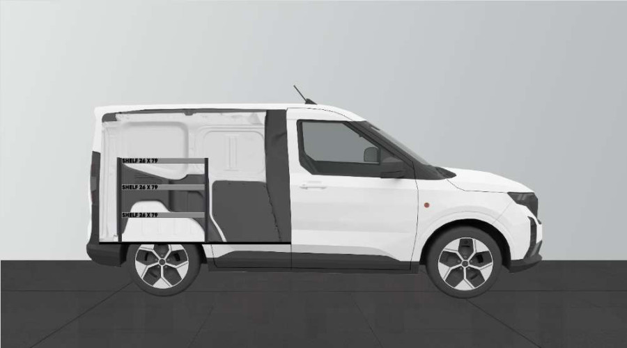 Un equipamiento más compacto para los vehículos que desean mantener más espacio de carga en Ford Courier L1. El equipamiento tiene un fondo de 262,5 mm y ofrece buenas posibilidades de almacenamiento para las piezas más pequeñas como tornillería y accesorios de menor tamaño; por ejemplo, técnicos de mantenimiento de edificios, electricistas y fontaneros. El equipamiento es válido para vehículos con y sin puertas laterales, pudiéndose completar con nuestras bandejas modulares inteligentes. Una alternativa para maximizar el espacio de almacenamiento consiste en completar los laterales con portaherramientas y con nuestros soportes compactos.
