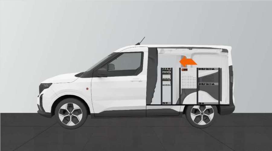 ¿Necesita optimizar su Ford Courier L1con un estante adicional? Este equipamiento le permite mantener el ancho en el vehículo, ya que el equipamiento tiene un fondo de 260 mm. El equipamiento de servicio tiene 4 cajones sobre guías con rodamientos de precisión, de tamaño variado para crear distintas posibilidades de almacenamiento. Se puede completar con kits de utensilios de quita y pon para cajones para tener las piezas más pequeñas perfectamente ordenadas. El espacio de la estantería en la parte trasera de la cajonera se completa a menudo con bandejas modulares. El peso de carga dividido en los cajones sobre carriles con rodamientos de bolas es de 35kg/ud. Las medidas internas de los cajones (en mm) son: 163 de ancho, 387 de fondo y 60 y 130 de alto.