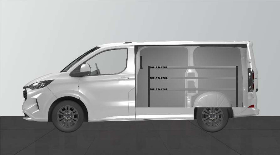 El conjunto de estantes para furgonetas BASE26 es el modelo básico para su Ford Custom & VW Transporter L1.