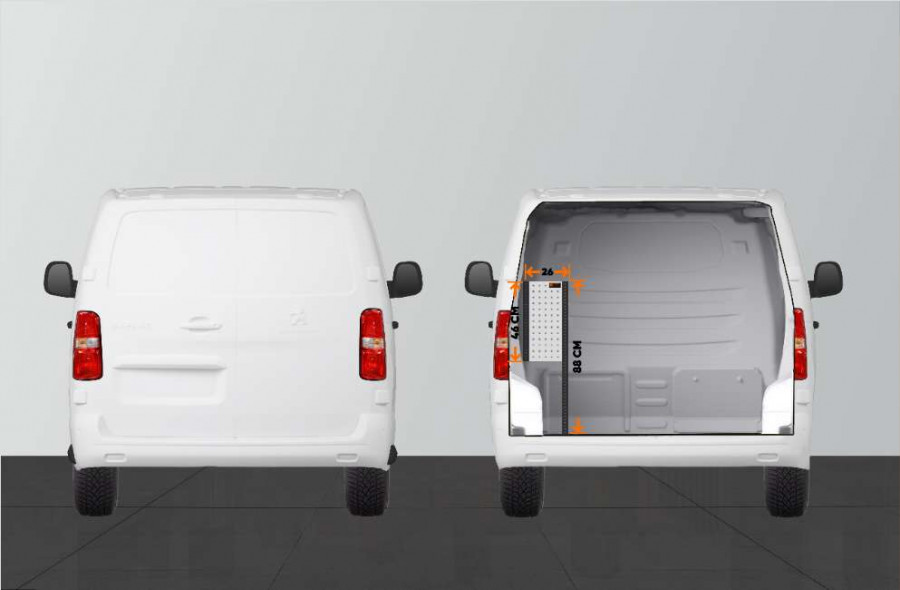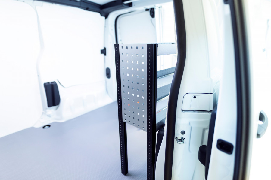 Un equipamiento más compacto para los vehículos que desean mantener más espacio de carga en Peugeot Expert, Citroen Jumpy, Opel Vivaro, Fiat Scudo & Toyota ProAce L1. El equipamiento tiene un fondo de 262,5 mm y ofrece buenas posibilidades de almacenamiento para las piezas más pequeñas como tornillería y accesorios de menor tamaño; por ejemplo, técnicos de mantenimiento de edificios, electricistas y fontaneros. El equipamiento es válido para vehículos con y sin puertas laterales, pudiéndose completar con nuestras bandejas modulares inteligentes. Una alternativa para maximizar el espacio de almacenamiento consiste en completar los laterales con portaherramientas y con nuestros soportes compactos.
