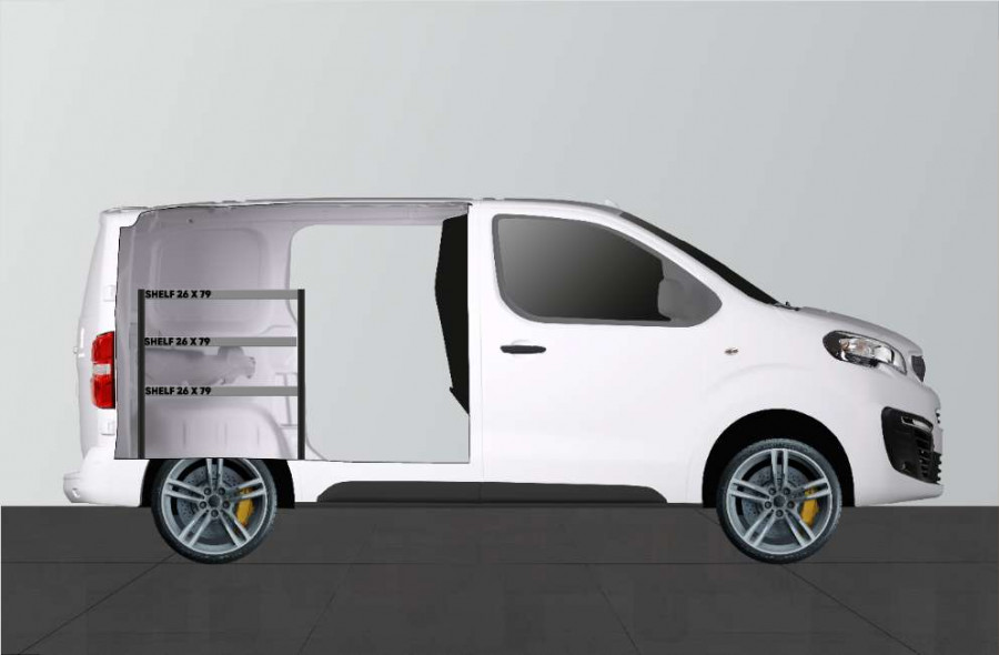 El conjunto de estantes para furgonetas SHORT26 es el modelo básico para su Expert, Jumpy, Vivaro, Scudo & ProAce L1.