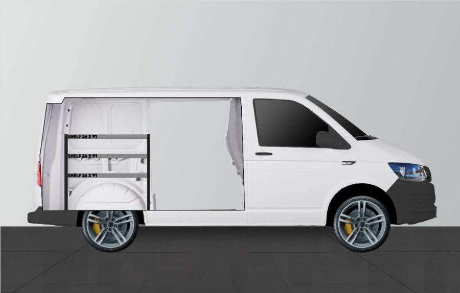Un equipamiento más compacto para los vehículos que desean mantener más espacio de carga en Volkswagen Transporter L1. El equipamiento tiene un fondo de 262,5 mm y ofrece buenas posibilidades de almacenamiento para las piezas más pequeñas como tornillería y accesorios de menor tamaño; por ejemplo, técnicos de mantenimiento de edificios, electricistas y fontaneros. El equipamiento es válido para vehículos con y sin puertas laterales, pudiéndose completar con nuestras bandejas modulares inteligentes. Una alternativa para maximizar el espacio de almacenamiento consiste en completar los laterales con portaherramientas y con nuestros soportes compactos.
