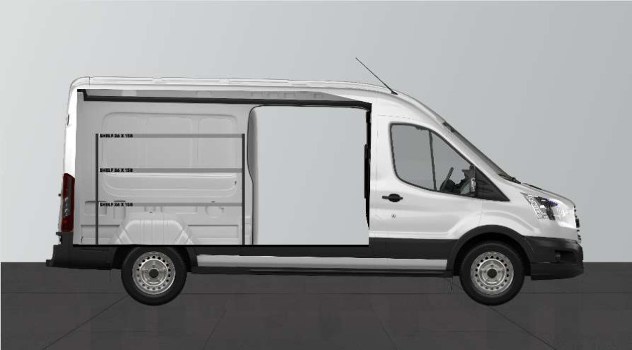 Un equipamiento más compacto para los vehículos que desean mantener más espacio de carga en Ford Transit L3H2. El equipamiento tiene un fondo de 262,5 mm y ofrece buenas posibilidades de almacenamiento para las piezas más pequeñas como tornillería y accesorios de menor tamaño; por ejemplo, técnicos de mantenimiento de edificios, electricistas y fontaneros. El equipamiento es válido para vehículos con y sin puertas laterales, pudiéndose completar con nuestras bandejas modulares inteligentes. Una alternativa para maximizar el espacio de almacenamiento consiste en completar los laterales con portaherramientas y con nuestros soportes compactos.