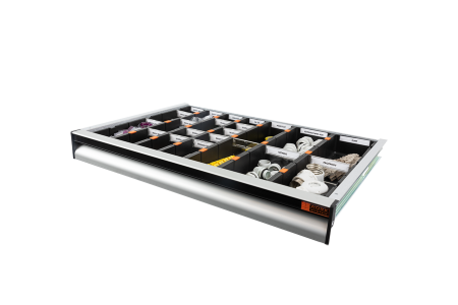 varje insatslåda och avdelare har ett etikettfack för att skapa de bästa förutsättningarna för ordning och reda i din transportbil.