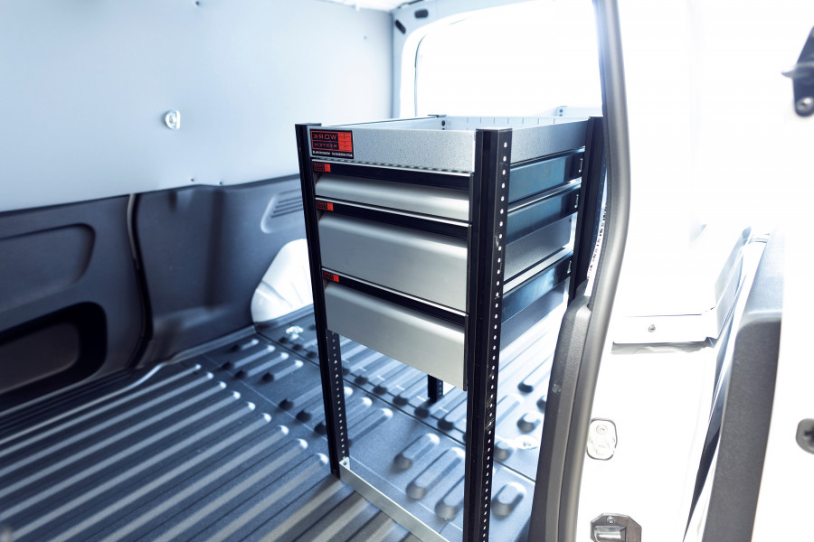 El conjunto de estantes para furgonetas más vendido para su VW Caddy Cargo & Ford Connect L1. El equipamiento ofrece múltiples posibilidades de almacenamiento, ya que los cajones sobre las guías con rodamientos de precisión permiten un acceso flexible a través de la puerta lateral, además de que los cajones se pueden sacar en la dirección de la marcha para tener una buena visión general. Se puede completar con los separadores de cajones maximizando la estructura entre las piezas más pequeñas. Nuestras estanterías más profundas ofrecen también óptimas posibilidades de almacenamiento para maletines de herramientas y máquinas de menor tamaño. La capacidad de carga de cada cajón sobre guías con rodamientos de precisión es de 35 kg/ud. Las medidas internas (en mm) de los cajones son: 308 de ancho, 387 de profundidad y 60 y 130 de alto.