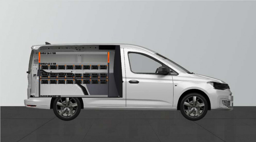 RACK es un nuevo equipamiento para vehículos líder en el sector para el VW Caddy Cargo & Ford Connect L2. Es perfecto para aquellas personas que necesitan óptimas posibilidades de almacenamiento para todo tipo de objetos tales como tornillos, acoplamientos, pernos, brocas, etc. El equipamiento está maximizado con un total de 24 de nuestras nuevas bandejas modulares, que se pueden dividir. Las bandejas modulares se extraen sobre carriles fijos, lo cual ofrece un acceso flexible. El frente de las bandejas modulares se ha diseñado para ofrecer una accesibilidad óptima pudiéndose completar con un frontal transparente y divisiones transversales que se pueden colocar cada 60 mm.
