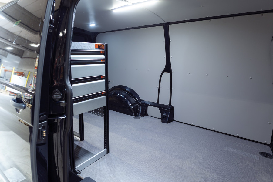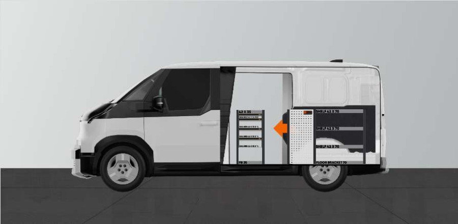 El conjunto de estantes para furgonetas más vendido para su Kia PV5 L2H1. El equipamiento ofrece múltiples posibilidades de almacenamiento, ya que los cajones sobre las guías con rodamientos de precisión permiten un acceso flexible a través de la puerta lateral, además de que los cajones se pueden sacar en la dirección de la marcha para tener una buena visión general. Se puede completar con los separadores de cajones maximizando la estructura entre las piezas más pequeñas. Nuestras estanterías más profundas ofrecen también óptimas posibilidades de almacenamiento para maletines de herramientas y máquinas de menor tamaño. La capacidad de carga de cada cajón sobre guías con rodamientos de precisión es de 35 kg/ud. Las medidas internas (en mm) de los cajones son: 308 de ancho, 387 de profundidad y 60 y 130 de alto.