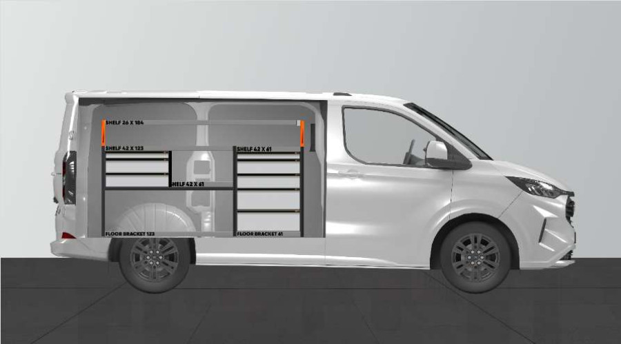 Este equipamiento para la Ford Custom & VW Transporter L1es ideal para quienes buscan un equipamiento que ofrezca mucha flexibilidad. En total, dispondrá de 8 uds. de cajones sobre guías con rodamientos de precisión. El equipamiento ofrece unas buenas posibilidades de almacenamiento tanto para maletines de herramientas y máquinas como para las piezas más pequeñas. Dispondrá de una cajonera con cajones de distintos tamaños para tener todo en su sitio y ordenado. Una opción habitual es completar los cajones sobre guías con rodamientos de precisión y con nuestros utensilios de quita y pon para cajones y separadores, esto le permitirá crear la mejor combinación posible en los cajones.