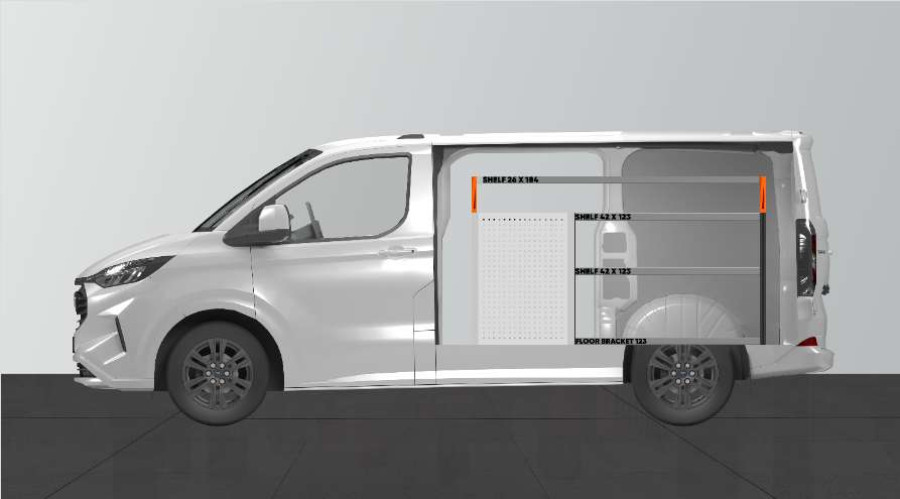 Este es uno de los sistemas más populares para su Ford Custom & VW Transporter l1 con puertas laterales en el lado del equipamiento. El equipamiento ofrece unas buenas posibilidades de almacenamiento tanto para maletines de herramientas y máquinas como para las piezas más pequeñas. Dispondrá de una cajonera con 5 uds. con cajones de distintos tamaños para tener todo en su sitio y ordenado. Detrás de los cajones hay un panel de herramientas que le ofrece posibilidades adicionales para colgar objetos en el vehículo. Los cajones van sobre guías con rodamientos y se completan a menudo con nuestros nuevos utensilios de quita y pon para cajones y separadores, esto le permite crear la mejor estructura posible. Una alternativa popular para maximizar el espacio de almacenamiento, completando los laterales portaherramientas con nuestros accesorios porta objetos.