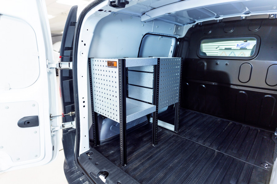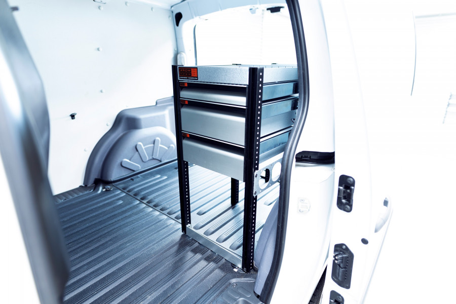 El conjunto de estantes para furgonetas más vendido para su Mercedes Citan, Renault Kangoo & Nissan Townstar L1. El equipamiento ofrece múltiples posibilidades de almacenamiento, ya que los cajones sobre las guías con rodamientos de precisión permiten un acceso flexible a través de la puerta lateral, además de que los cajones se pueden sacar en la dirección de la marcha para tener una buena visión general. Se puede completar con los separadores de cajones maximizando la estructura entre las piezas más pequeñas. Nuestras estanterías más profundas ofrecen también óptimas posibilidades de almacenamiento para maletines de herramientas y máquinas de menor tamaño. La capacidad de carga de cada cajón sobre guías con rodamientos de precisión es de 35 kg/ud. Las medidas internas (en mm) de los cajones son: 308 de ancho, 387 de profundidad y 60 y 130 de alto.