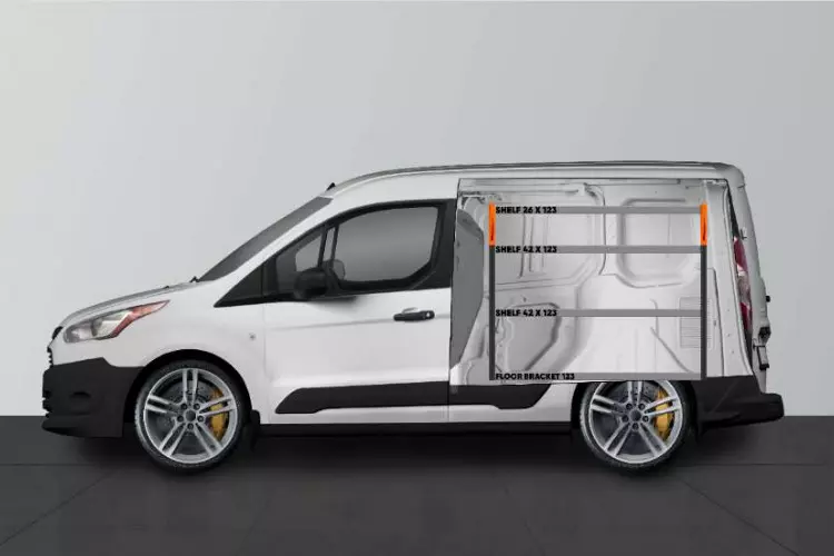 Una equipo adaptado a su Ford Connect L1, ofreciéndole muy buenas opciones de almacenamiento tanto para maletines de herramientas y máquinas como para las piezas más pequeñas. Las estanterías del equipamiento tienen un fondo de 420 mm, permitiendo guardar fácilmente la mayoría de los maletines de herramientas del mercado. La estantería superior, es de 262,5 mm completándose a menudo con nuestras bandejas modulares. De este modo, es posible disponer de espacio para guardar todas las piezas más pequeñas. Sin olvidarnos de utilizar el panel para herramientas ubicado en lateral designado como portaherramientas.