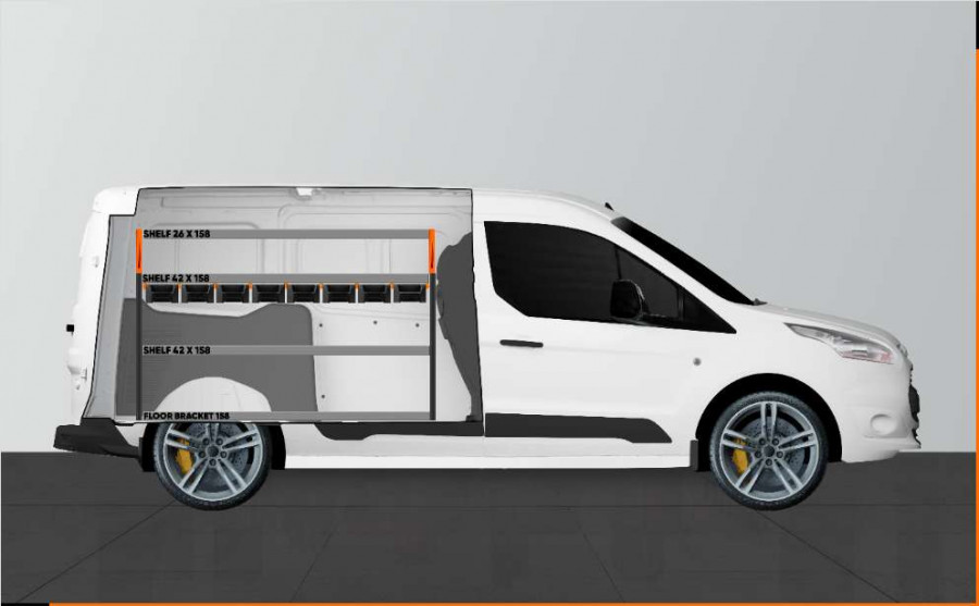 Un equipamiento para personas que, desde el principio, están decididas a mantenerlo todo perfectamente ordenado en su Ford Connect L2. En este equipamiento se incluyen 8 uds. de nuestras bandejas modulares inteligentes. Puede extraerlas sin problemas gracias a nuestros guías para bandejas modulares y ajustarlas a lo largo de las estanterías. Evidentemente, también disfrutará de unas óptimas posibilidades de almacenamiento para sus maletines de herramientas, máquinas y materiales, ya que las estanterías tienen un fondo de 420 mm.