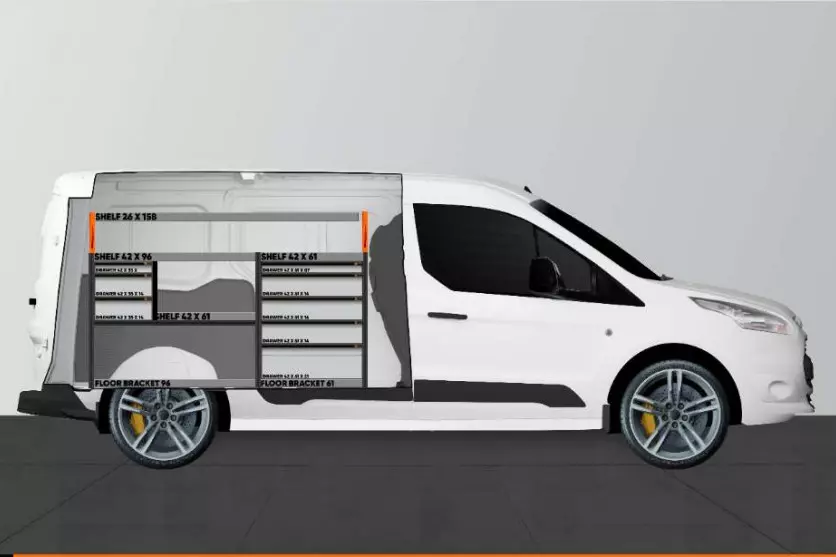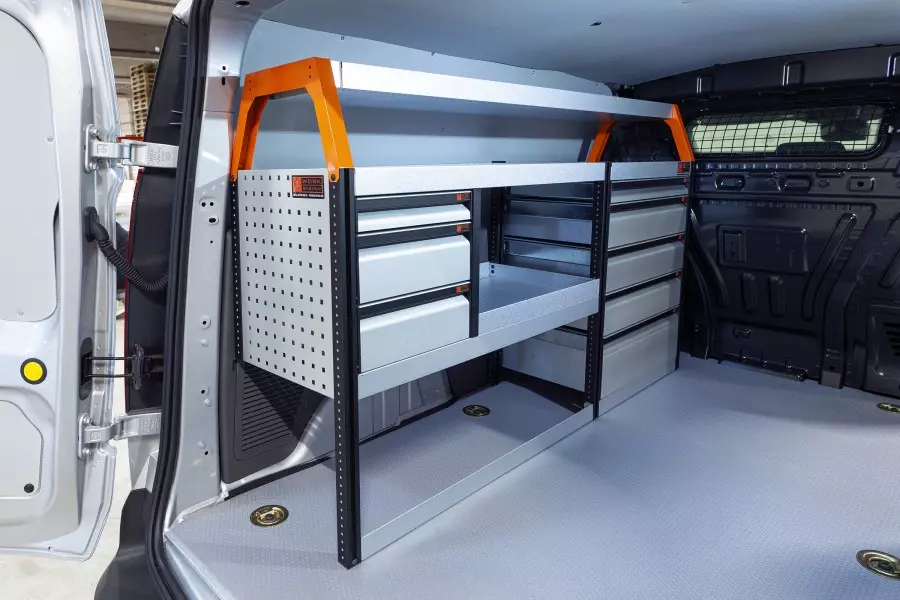 Este equipamiento para la Ford Connect L2 es ideal para quienes buscan un equipamiento que ofrezca mucha flexibilidad. En total, dispondrá de 8 uds. de cajones sobre guías con rodamientos de precisión. El equipamiento ofrece unas buenas posibilidades de almacenamiento tanto para maletines de herramientas y máquinas como para las piezas más pequeñas. Dispondrá de una cajonera con cajones de distintos tamaños para tener todo en su sitio y ordenado. Una opción habitual es completar los cajones sobre guías con rodamientos de precisión y con nuestros utensilios de quita y pon para cajones y separadores, esto le permitirá crear la mejor combinación posible en los cajones.
