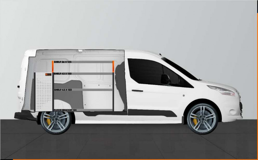 Un equipamiento para aquellas personas que desean tener un acceso flexible con multitud cajones. Este equipamiento para su Ford Connect L2 ofrece también buenas posibilidades para almacenar sus maletines de herramientas, máquinas y sus piezas más pequeñas en sus estanterías. Las estanterías se pueden completar con separadores de estanterías o con nuestras bandejas modulares inteligentes. Las bandejas modulares están disponibles en distintos tamaños para satisfacer sus necesidades específicas.
