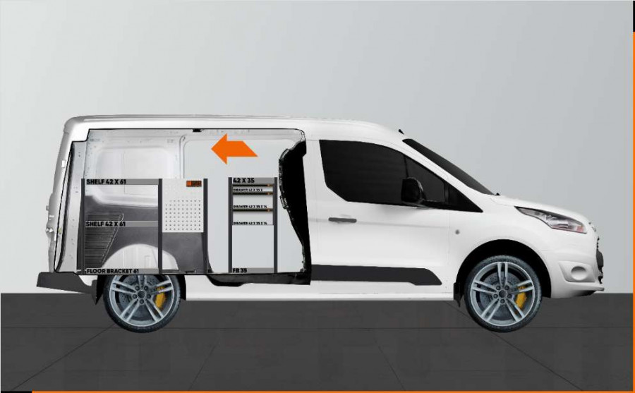 El conjunto de estantes para furgonetas más vendido para su Ford Connect L2. El equipamiento ofrece múltiples posibilidades de almacenamiento, ya que los cajones sobre las guías con rodamientos de precisión permiten un acceso flexible a través de la puerta lateral, además de que los cajones se pueden sacar en la dirección de la marcha para tener una buena visión general. Se puede completar con los separadores de cajones maximizando la estructura entre las piezas más pequeñas. Nuestras estanterías más profundas ofrecen también óptimas posibilidades de almacenamiento para maletines de herramientas y máquinas de menor tamaño. La capacidad de carga de cada cajón sobre guías con rodamientos de precisión es de 35 kg/ud. Las medidas internas (en mm) de los cajones son: 308 de ancho, 387 de profundidad y 60 y 130 de alto.