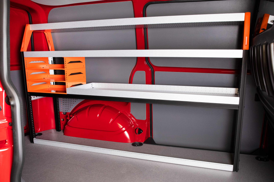 Todos nuestros sistemas incluyen duraderas tablas de herramientas que optimizan tanto el espacio de almacenamiento como la funcionalidad de su furgoneta de trabajo. Fabricadas en aluminio de 1 mm con anodizado transparente de 15 µm, están diseñadas para resistir entornos difíciles y mantener su aspecto elegante con el paso del tiempo. Evite los objetos sueltos en el suelo, libere espacio y agilice su trabajo organizando su equipo directamente en los tableros de herramientas del sistema de estanterías.
