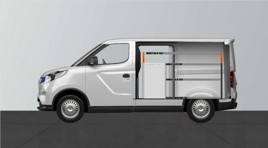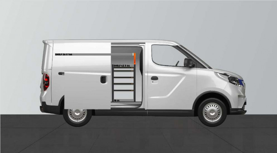 Este es uno de los sistemas más populares para su Maxus e-Deliver 3 L1 con puertas laterales en el lado del equipamiento. El equipamiento ofrece unas buenas posibilidades de almacenamiento tanto para maletines de herramientas y máquinas como para las piezas más pequeñas. Dispondrá de una cajonera con 5 uds. con cajones de distintos tamaños para tener todo en su sitio y ordenado. Detrás de los cajones hay un panel de herramientas que le ofrece posibilidades adicionales para colgar objetos en el vehículo. Los cajones van sobre guías con rodamientos y se completan a menudo con nuestros nuevos utensilios de quita y pon para cajones y separadores, esto le permite crear la mejor estructura posible. Una alternativa popular para maximizar el espacio de almacenamiento, completando los laterales portaherramientas con nuestros accesorios porta objetos.
