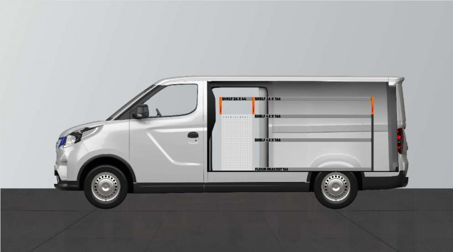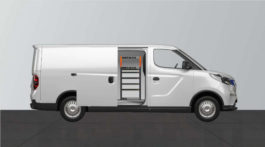 Este es uno de los sistemas más populares para su Maxus e-Deliver 3 L2 con puertas laterales en el lado del equipamiento. El equipamiento ofrece unas buenas posibilidades de almacenamiento tanto para maletines de herramientas y máquinas como para las piezas más pequeñas. Dispondrá de una cajonera con 5 uds. con cajones de distintos tamaños para tener todo en su sitio y ordenado. Detrás de los cajones hay un panel de herramientas que le ofrece posibilidades adicionales para colgar objetos en el vehículo. Los cajones van sobre guías con rodamientos y se completan a menudo con nuestros nuevos utensilios de quita y pon para cajones y separadores, esto le permite crear la mejor estructura posible. Una alternativa popular para maximizar el espacio de almacenamiento, completando los laterales portaherramientas con nuestros accesorios porta objetos.