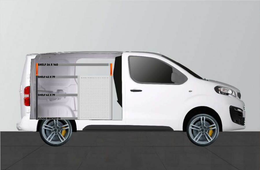 Con este equipamiento para vehículos, dispondrá de un gran espacio de almacenamiento en estanterías y cajones adecuados para la Expert, Jumpy, Vivaro, Scudo & ProAce L1.