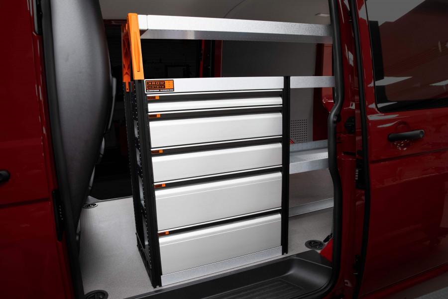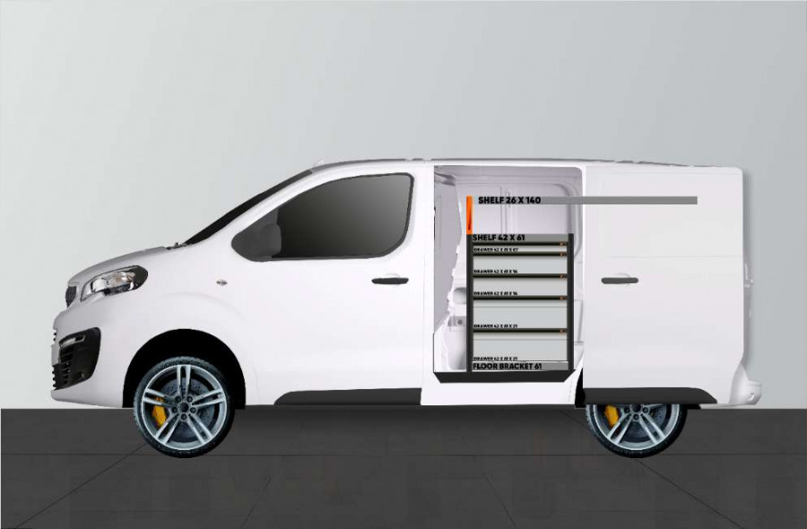 Con una combinación de cajones y estanterías, este equipamiento para vehículos es muy popular, además de ser adecuado para Expert, Jumpy, Vivaro, Scudo & ProAce L2.