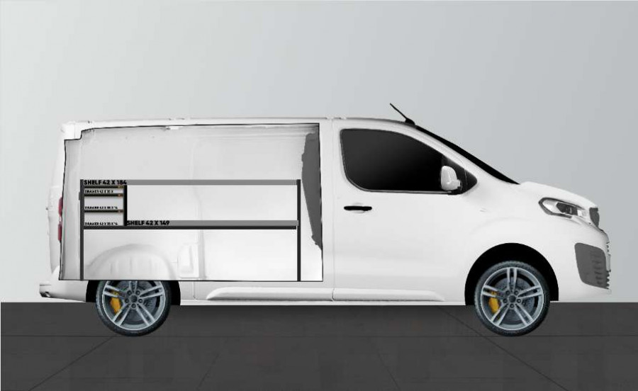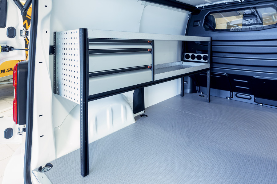 Bilinnredning med gode oppbevaringsmuligheter for Expert, Jumpy, Vivaro & ProAce L2 til markedets beste pris. Work System har alt til transportbilen.
