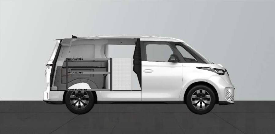 Este es uno de los sistemas más populares para su VOLKSWAGEN ID BUZZ L1 con puertas laterales en el lado del equipamiento. El equipamiento ofrece unas buenas posibilidades de almacenamiento tanto para maletines de herramientas y máquinas como para las piezas más pequeñas. Dispondrá de una cajonera con 5 uds. con cajones de distintos tamaños para tener todo en su sitio y ordenado. Detrás de los cajones hay un panel de herramientas que le ofrece posibilidades adicionales para colgar objetos en el vehículo. Los cajones van sobre guías con rodamientos y se completan a menudo con nuestros nuevos utensilios de quita y pon para cajones y separadores, esto le permite crear la mejor estructura posible. Una alternativa popular para maximizar el espacio de almacenamiento, completando los laterales portaherramientas con nuestros accesorios porta objetos.