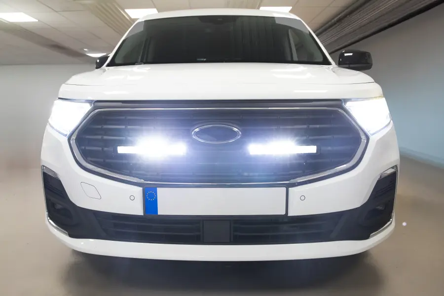 Ilumine la conducción nocturna en su Ford Connect 2025- con la barra de LED EXPLOSION SLIM de 280 mm con un soporte específico para el modelo para su instalación empotrada en el parachoques para un resultado discreto y elegante. Se adapta sólo a Wildtrack, todos los detalles de montaje y cables incluidos.