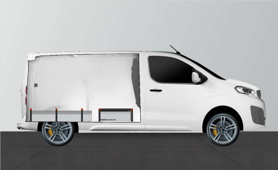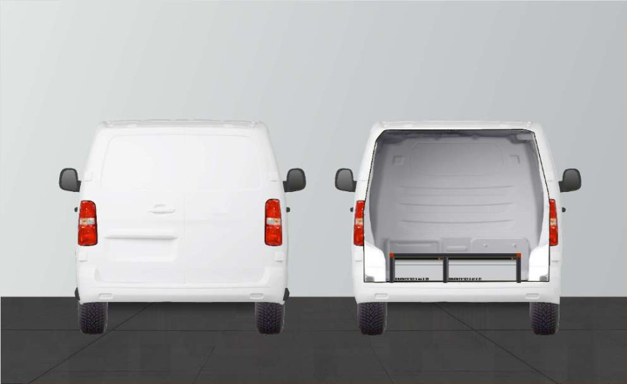 El suelo doble es adecuado para Peugeot Expert L2, Opel Vivaro L2 2020-, Citroën Jumpy L2 y Toyota Medium con Pared de confort estándar.