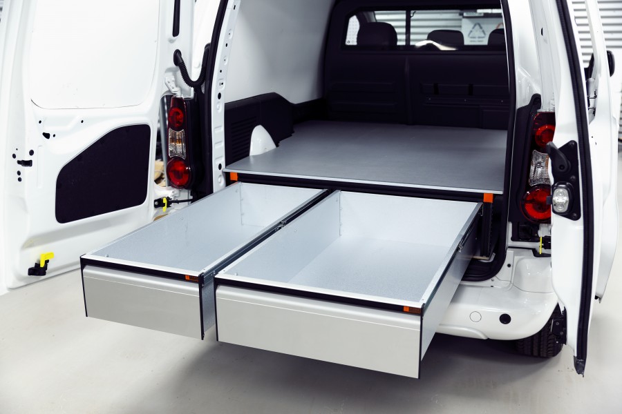 El doble fondo personalizado de Work System es la solución definitiva tanto para la seguridad como para el almacenamiento. Se evita que lo que se coloca en los cajones salga volando en caso de, por ejemplo, frenazo brusco. Al mismo tiempo, no es necesario arrastrarse dentro del coche para recuperar las cosas.