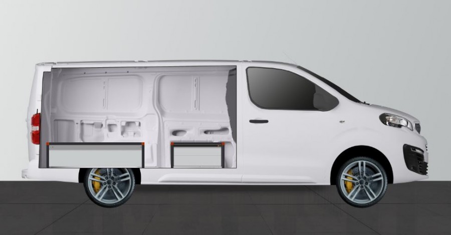 Suelo doble Alto: 342 mm 3 cajones para Expert, Vivaro 2020-, Jumpy,Scudo y ProAce L3 con pared Prefence