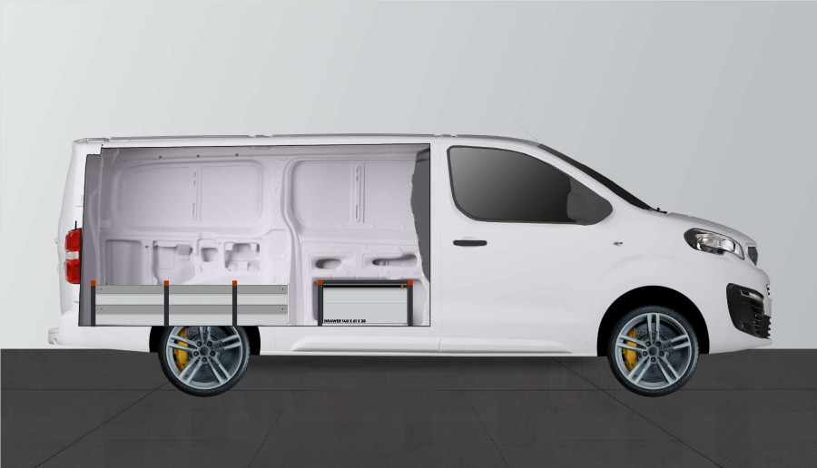 Suelo doble Alto: 342 mm 4 cajones para Expert, Vivaro 2020-, Jumpy,Scudo y ProAce L3 con Pared de confort estándar