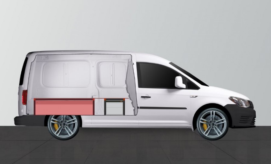 Este doble suelo consta de 3 cajones, 2 de las cuales se abren desde la parte trasera del vehículo y 1 desde la puerta lateral.