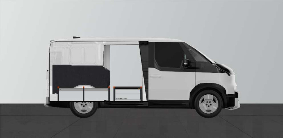 Suelo doble Alto: 350 mm 4 cajones para KIA PV5 L2 con pared Standard Confort