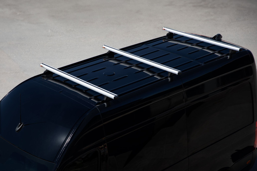 Las patas de techo se montan de forma sencilla en el vehículo con un separador de goma adaptado a cada modelo para un ajuste óptimo. La altura a la que se instala la baca se ajusta con la ayuda de claras indicaciones de altura para que las barras queden al mismo nivel. La cubierta protege contra el agua y ofrece la oportunidad de ocultar los cables de las luces de trabajo y de advertencia.
